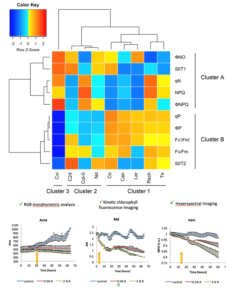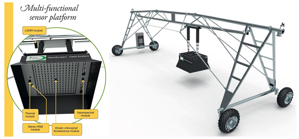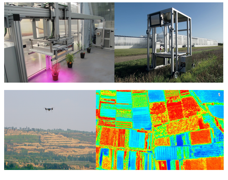 1)大型多功能成像平臺(Multi-functional sensor platform),集成了葉綠素熒光成像、RGB成像、紅外熱成像、LiDAR、高光譜成像等各種先進高端傳感設備,全面分析:
