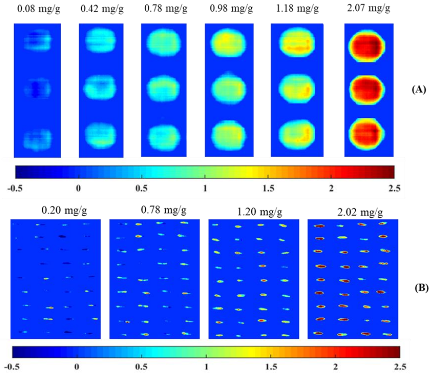 黑米粉末(A)和種子(B)的花色苷濃度預測分布圖