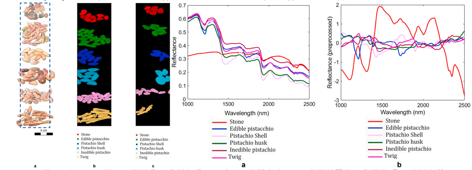 以往使用的HPLC、GC–MS、IR-MS等方法均存在不能實時檢測的弊端。近年來,基于彩色成像(RGB)的機器視覺技術在食品加工過程和品質控制等方面發揮了重要作用,但對螨蟲、霉菌以及其他外來物的識別還是存在短板。意大利實驗人員將高光譜成像(HSI)技術應用于開心果的品質控制中,對樣品的不同理化特征進行定性和定量分析,為食品的品質控制探索更優的策略。