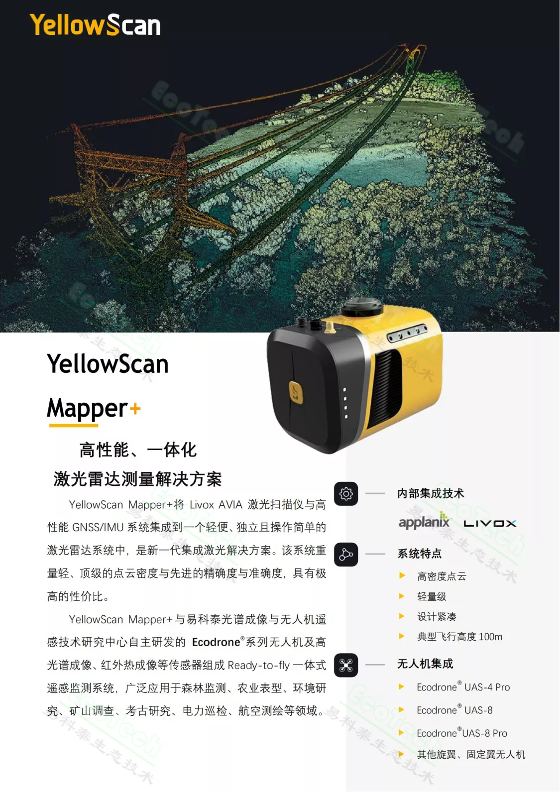 YellowScan Mapper+ 機載激光雷達系統 ——高性能、一體化激光雷達解決方案