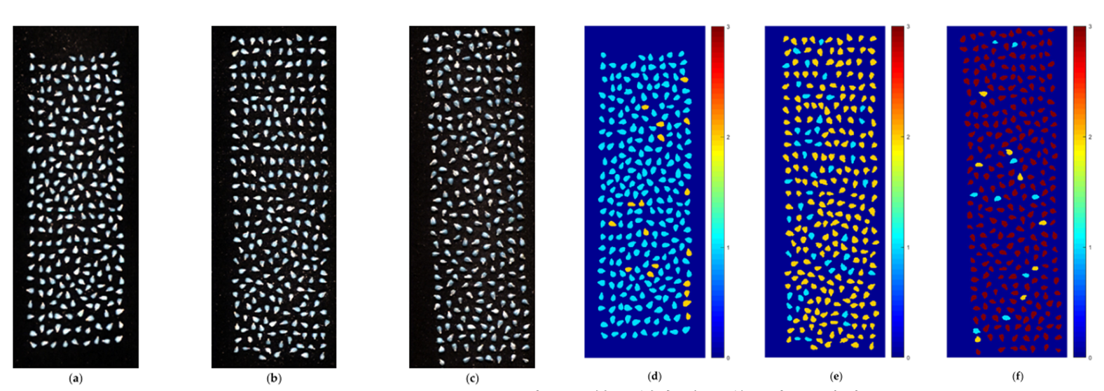 圖2-2:(a)-(f)以此為品種I-Ⅲ的原始灰度圖像和相應分類圖
